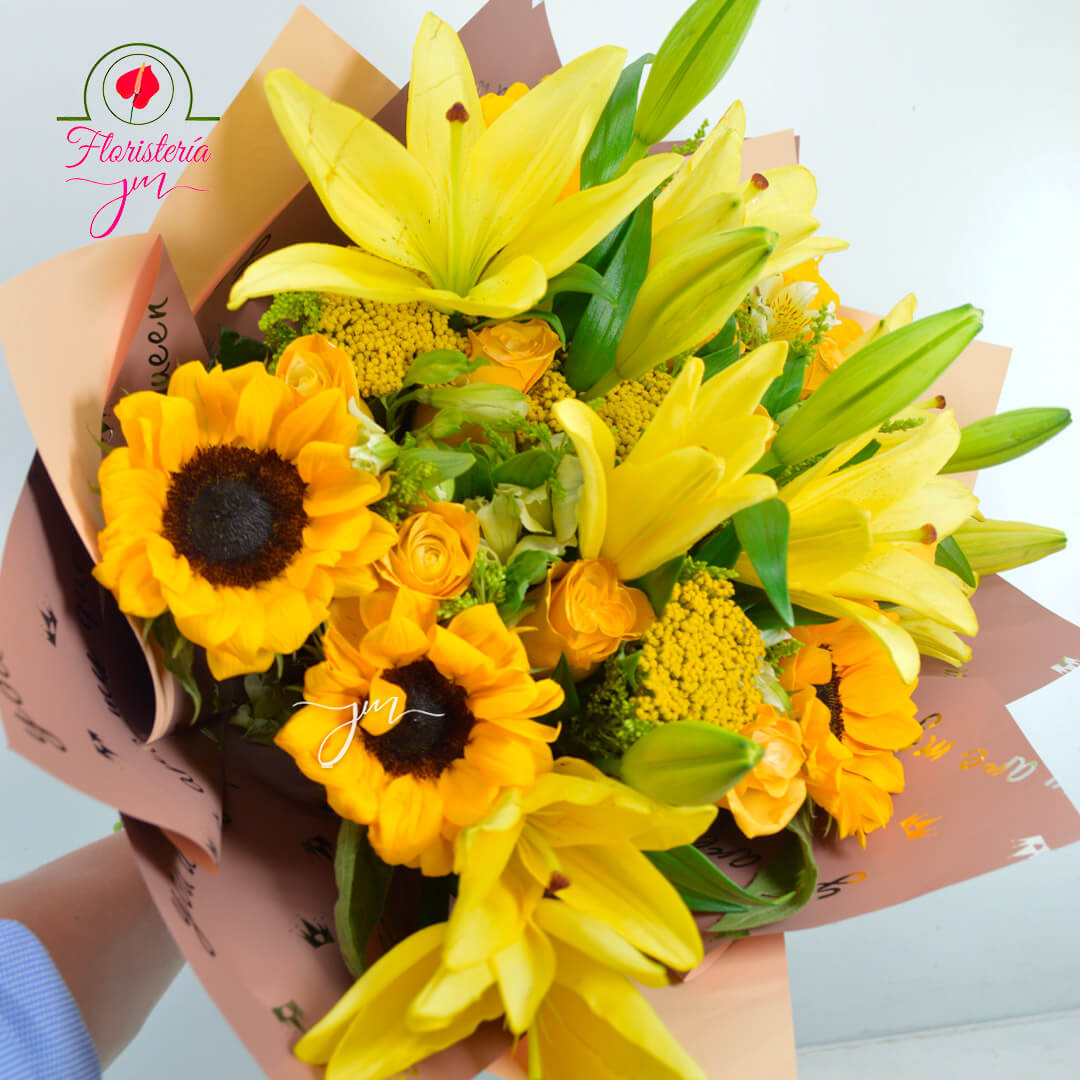 🌻 Girasoles + mini rosas amarillas